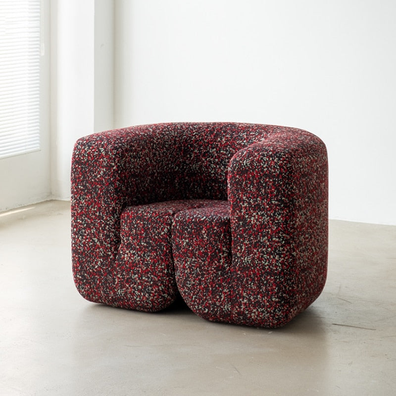This luxuriously soft lounge chair is dressed in a carpet-textured fabric in an elegant hue.