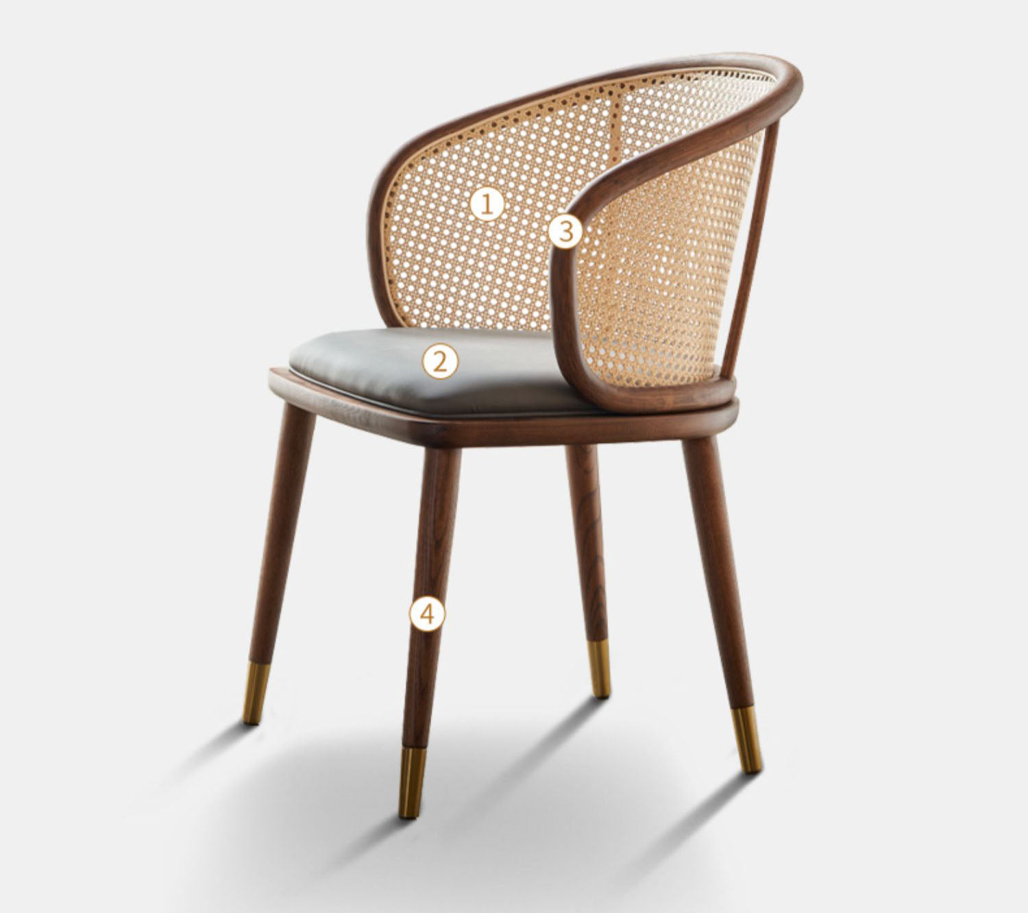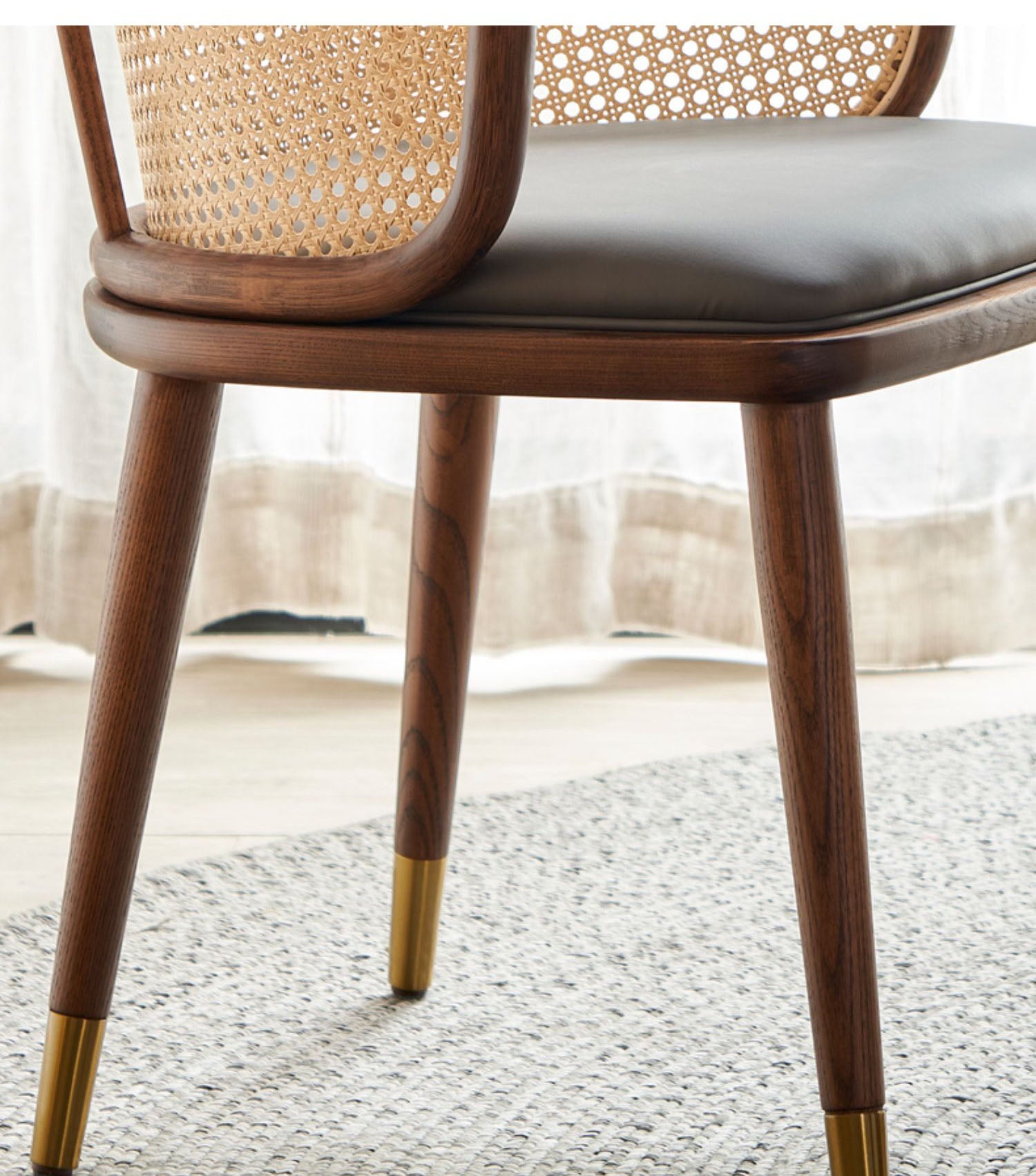 Solid wood dining chair tripod, with metal copper foot cover, light luxury and strong decoration.