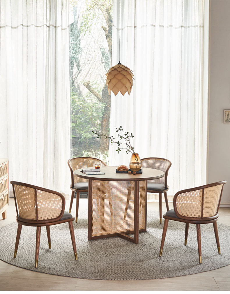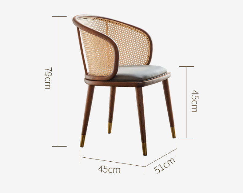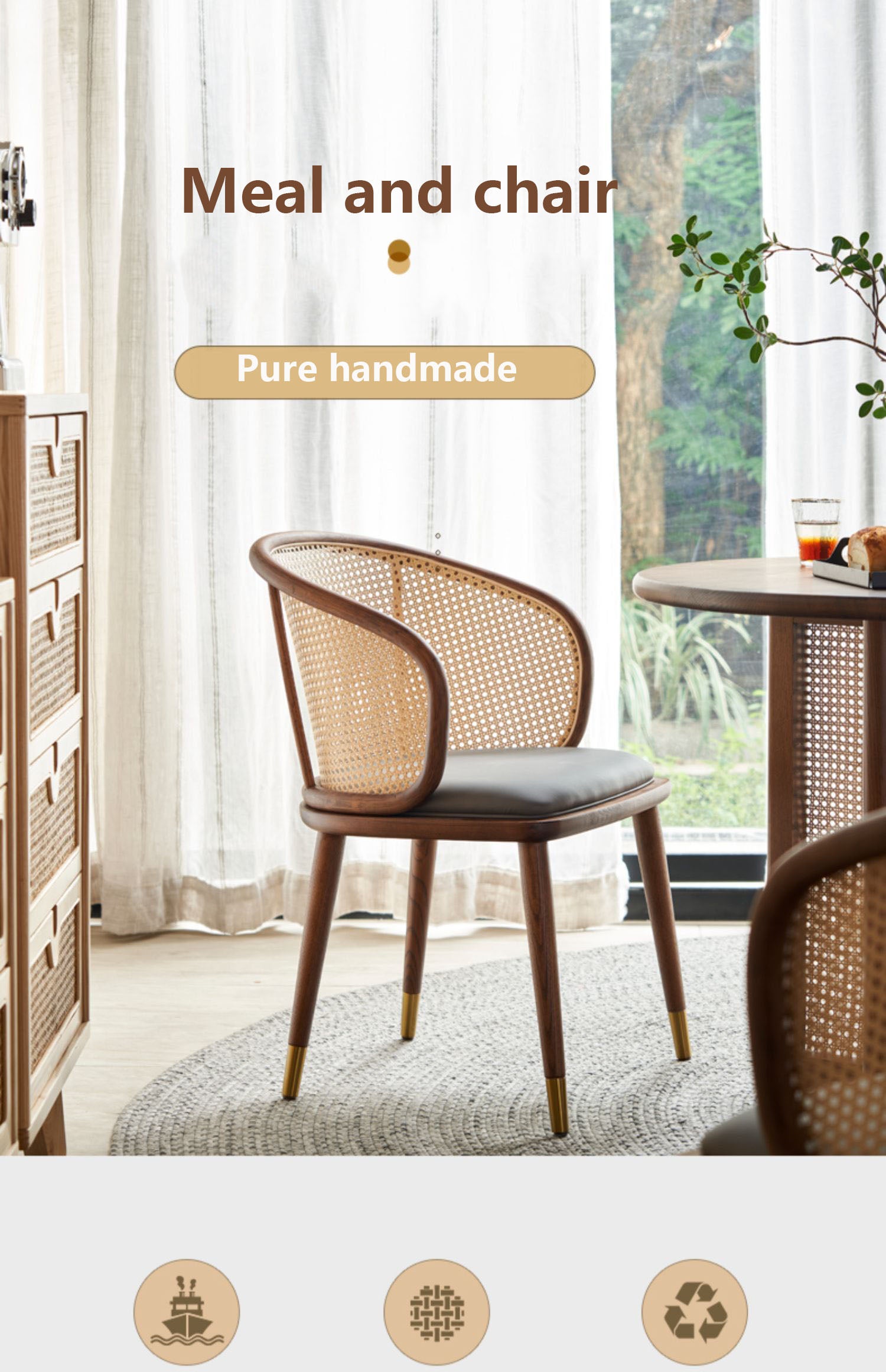 Nordic dining chairs rattan weave furniture Design armchair Solid wood with backrest seats home living room Soft cane chair stool