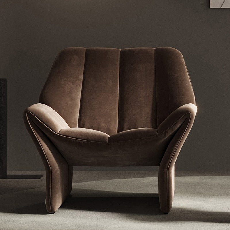 This brown velvet lounge chair boasts a graceful seashell-like texture, flaunting a stunning figure.